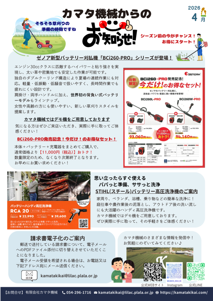 これからの時期は、少しずつ草も伸びはじめ、草刈りシーズンの準備も気になる頃です。