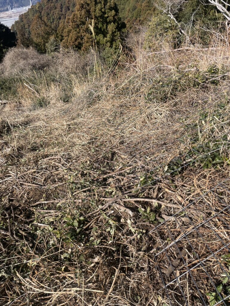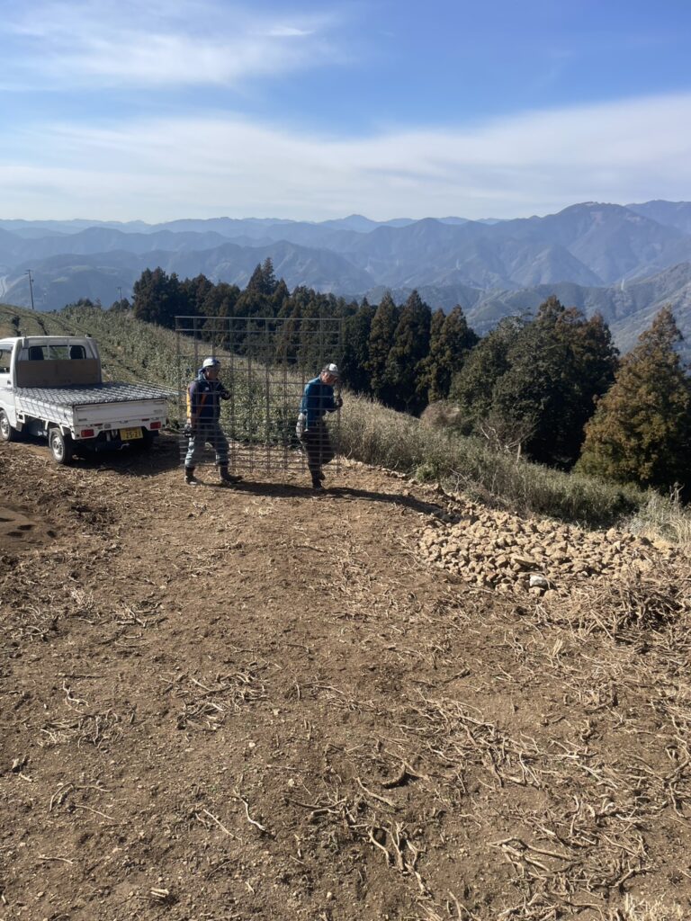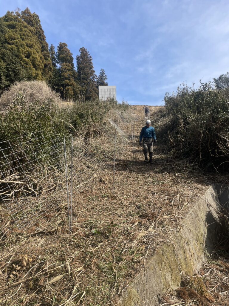 昨年施工した、地域一体による獣害防止柵(猪・シカ対策)の設置工事。