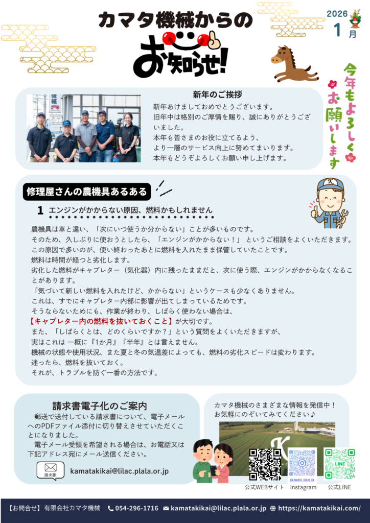 本年も、皆さまの大切な機械を安心してお使いいただけるよう、