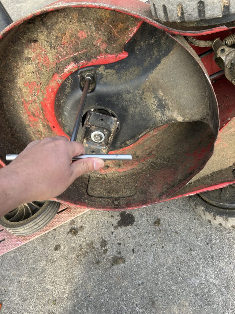 農機具はエンジン直結で動力を伝える構造のものが多く、この芝刈機のように、刈刃に加わった衝撃が直接エンジンのクランクシャフトへ影響してしまうケースが少なくありません。