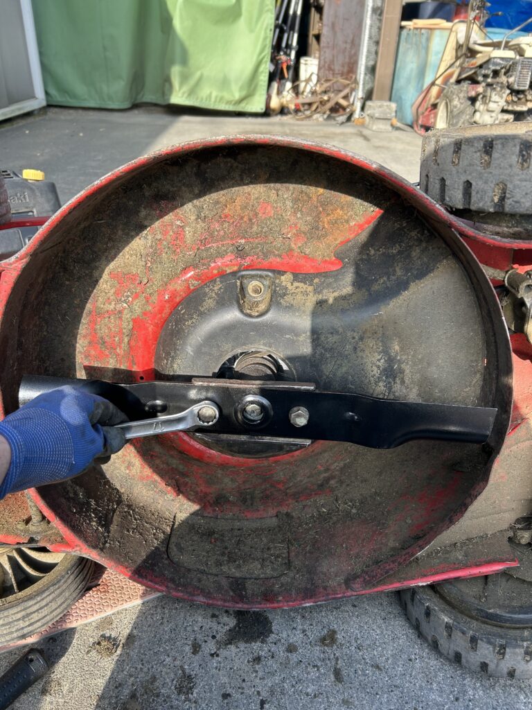 芝刈り作業中に刈刃が障害物に強く接触したため、点検してほしいとのことで修理のご依頼をいただきました。